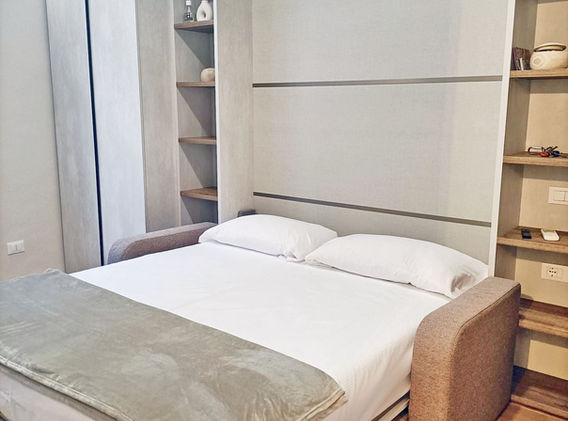 Tutti i comfort: aria condizionata/ pompa di calore, biancheria, lavatrice, cucina completa, bagno con doccia e asciugacapelli, e letto a scomparsa. Affaccio su cortile interno, silenzioso e tranquillo.